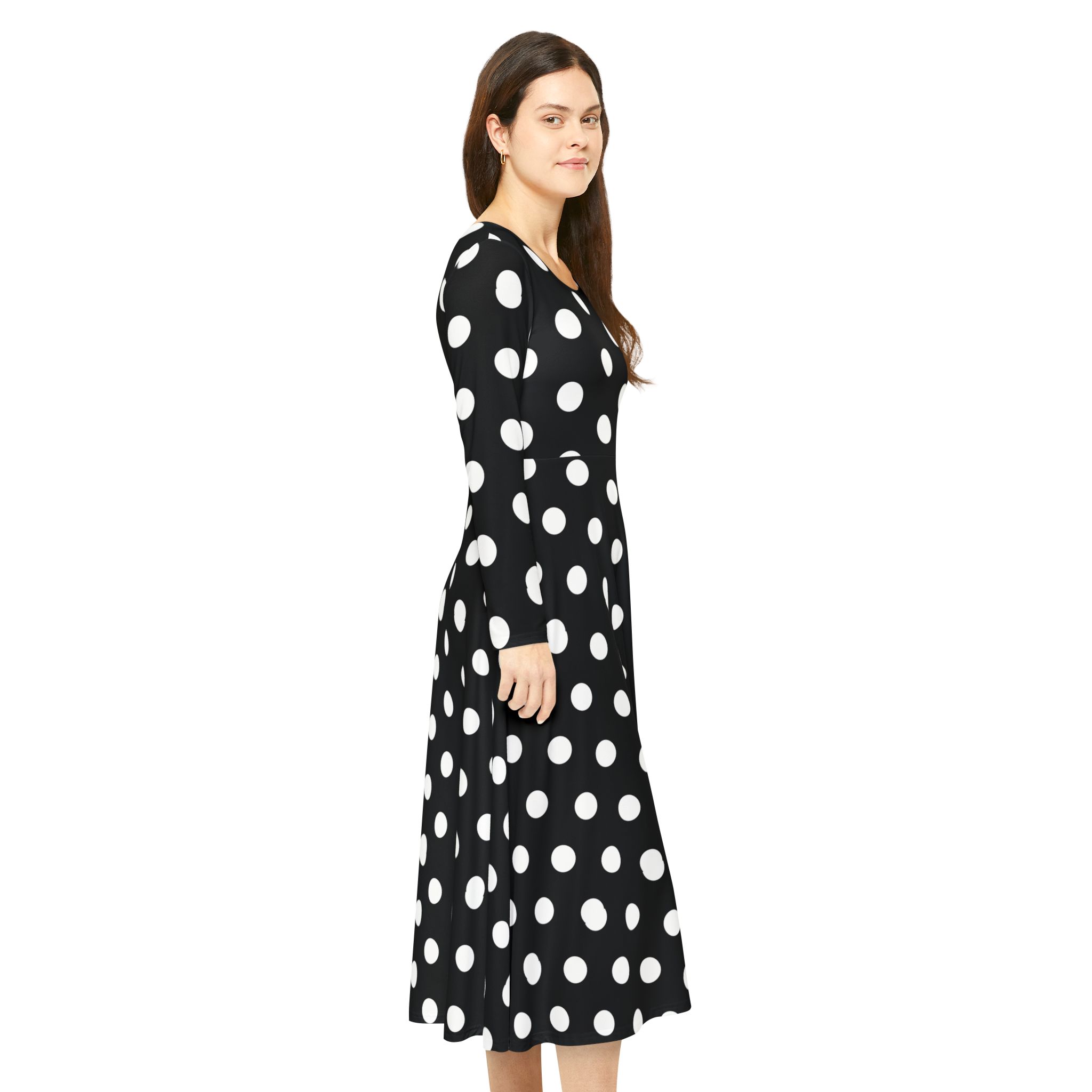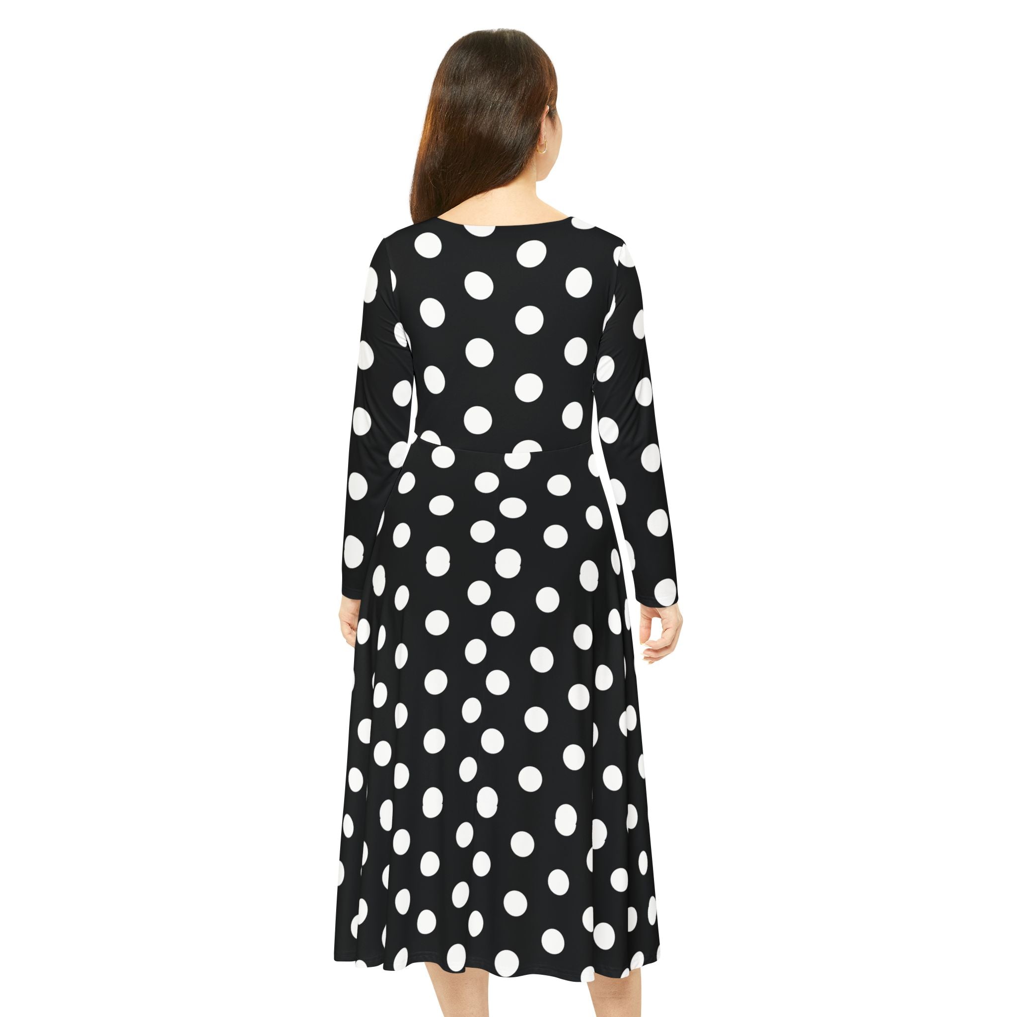 水玉柄 長袖ダンスドレス — ストレッチ素材 レディース パフォーマンスドレス PENELOPE