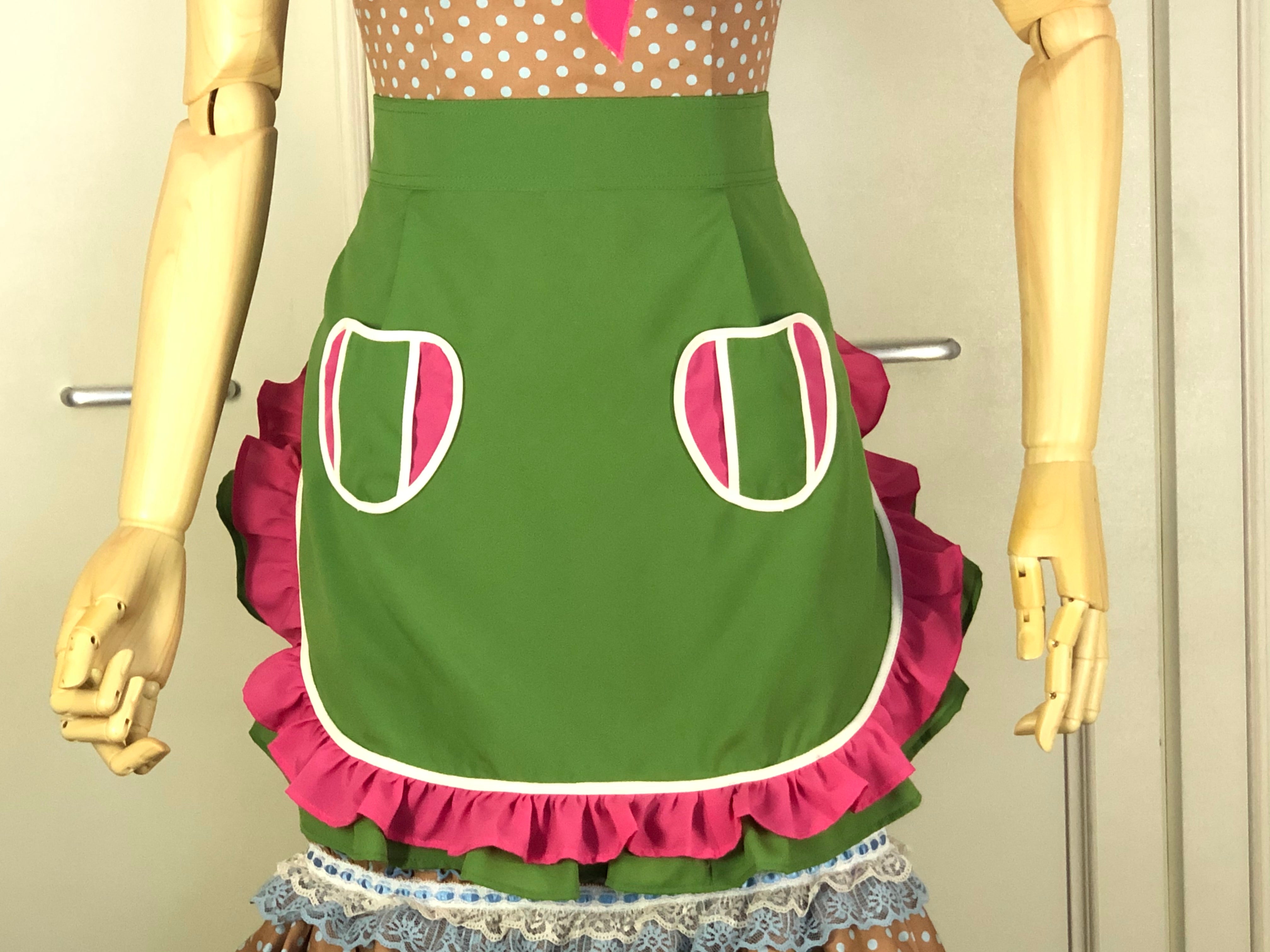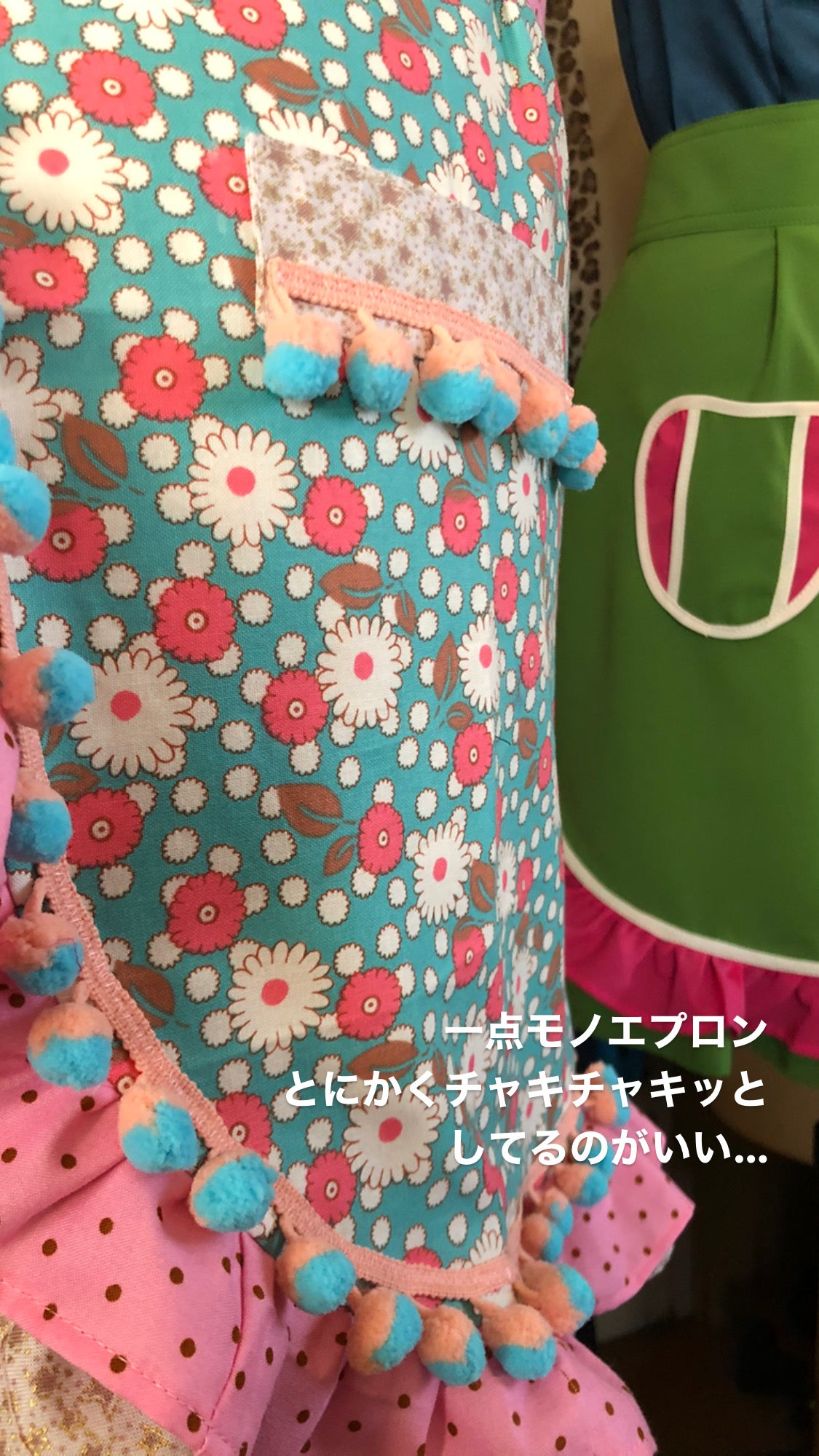 このエプロン、本当はハートの形のポケットを付けたつもりだったのですが、